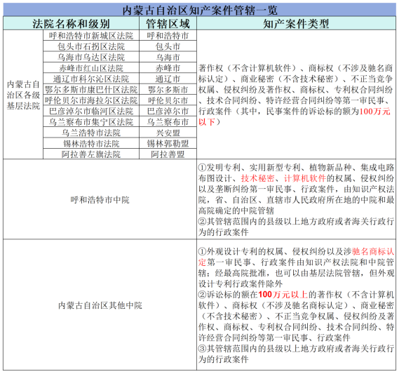 【2】《最高人民法院关于印发基层人民法院管辖第一审知识产权民事、行政案件标准的通知》及配套文件《基层人民法院管辖第一审知识产权民事、行政案件标准》(法〔2022〕109号)(基层法院知产民事案件管辖的诉讼标的额均不包含本数)