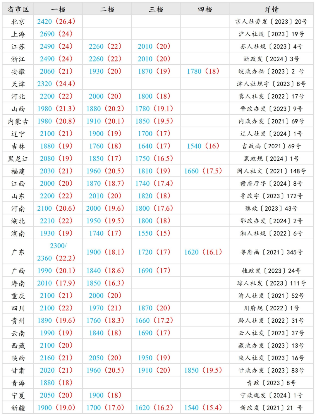 *说明:表内蓝色数字为最低月度工资标准,红色数字为最低小时工资标准。广东是2300元,深圳是2360元。
