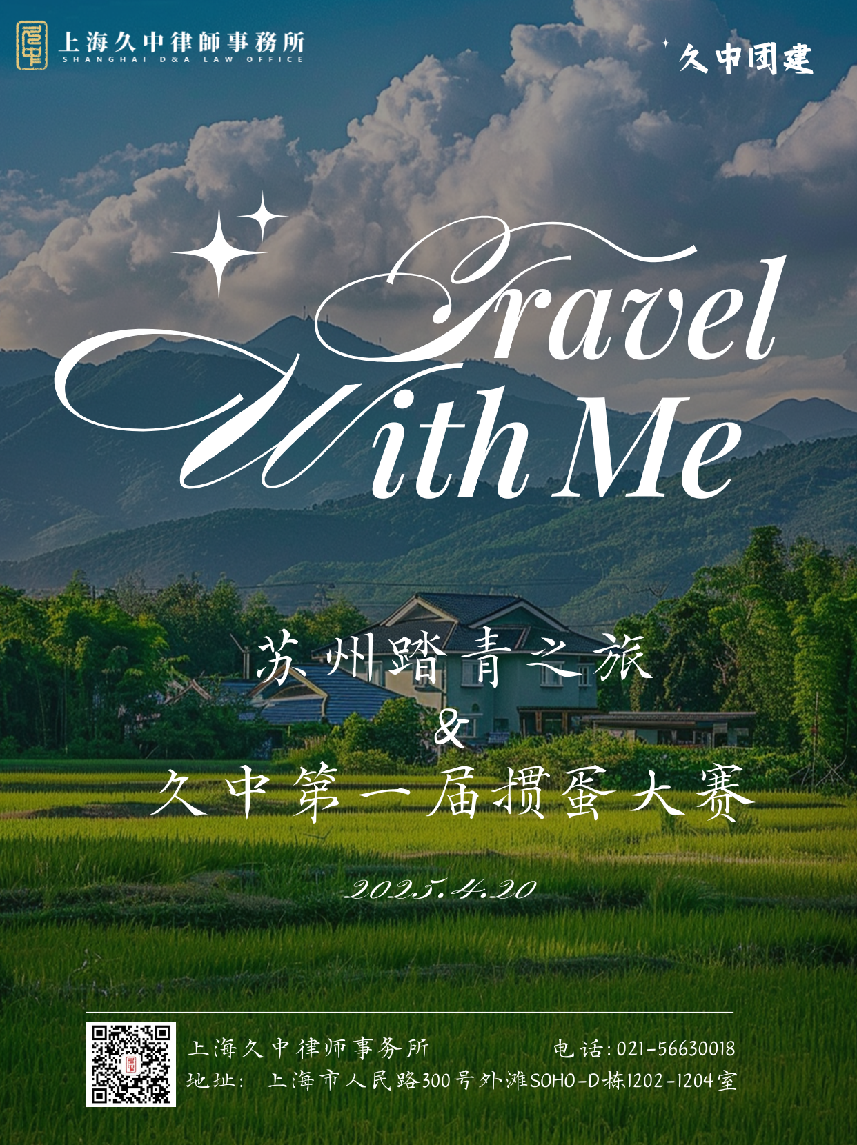 4月20日,正值谷雨时节,上海久中律师事务所组织了一场充满活力的春日团建活动。此次活动以 “苏州踏青之旅 & 久中第一届掼蛋大赛” 为主题,在明媚春光中,为律所伙伴们带来了一段充满诗意与欢乐的难忘时光。