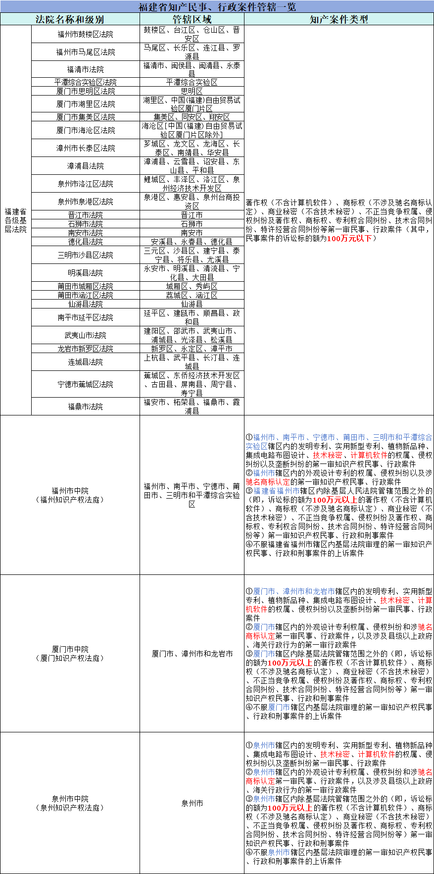 【7】福建高院:《福建省高级人民法院关于调整第一审知识产权民事、行政案件管辖的公告》,载澎湃网:https://m.thepaper.cn/baijiahao_17873168