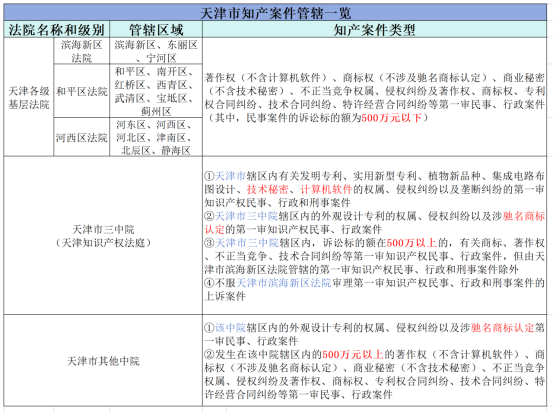 【2】《最高人民法院关于印发基层人民法院管辖第一审知识产权民事、行政案件标准的通知》及配套文件《基层人民法院管辖第一审知识产权民事、行政案件标准》(法〔2022〕109号)(基层法院知产民事案件管辖的诉讼标的额均不包含本数)