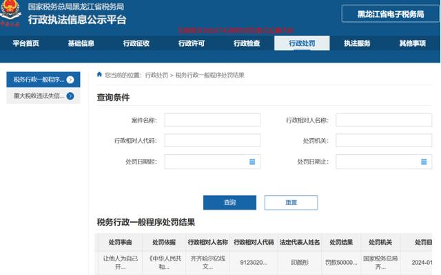 案例1:2021年至2022年期间黑龙江富拉尔基区某郭姓主播设立5个个体户开具与实际经营不符的发票8452970元,行为构成虚开,于2024年被齐齐哈尔市税务局第二稽查局处以罚款50万元。