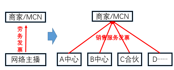 个人直播带货取得商家或MCN机构发放的佣金、坑位费等属于劳务报酬,认定的政策依据:《个人所得税法实施条例》第六条规定,该佣金性质属于劳务报酬所得,应由该主播向商家或MCN机构开具劳务发票;《广告市场个人所得税征收管理暂行办法(2018修正)》第五条第二款规定“纳税人在广告设计、制作、发布过程中提供其他劳务取得的所得,视其情况分别按照税法规定的劳务报酬所得、稿酬所得、特许权使用费所得等应税项目计算纳税”。近年来,带货主播听从 “专家”建议,成立多家某某中心、某某合伙企业等空壳主体,主要功能就是向商家开票,将主播个人的劳务报酬转变成了某某中心、某某合伙企业的经营所得。主播还是那个主播,但票流性质已发生演变,但没有真实业务支撑的空壳主体,一经税务稽查被行政处罚是铁定的,如下图: