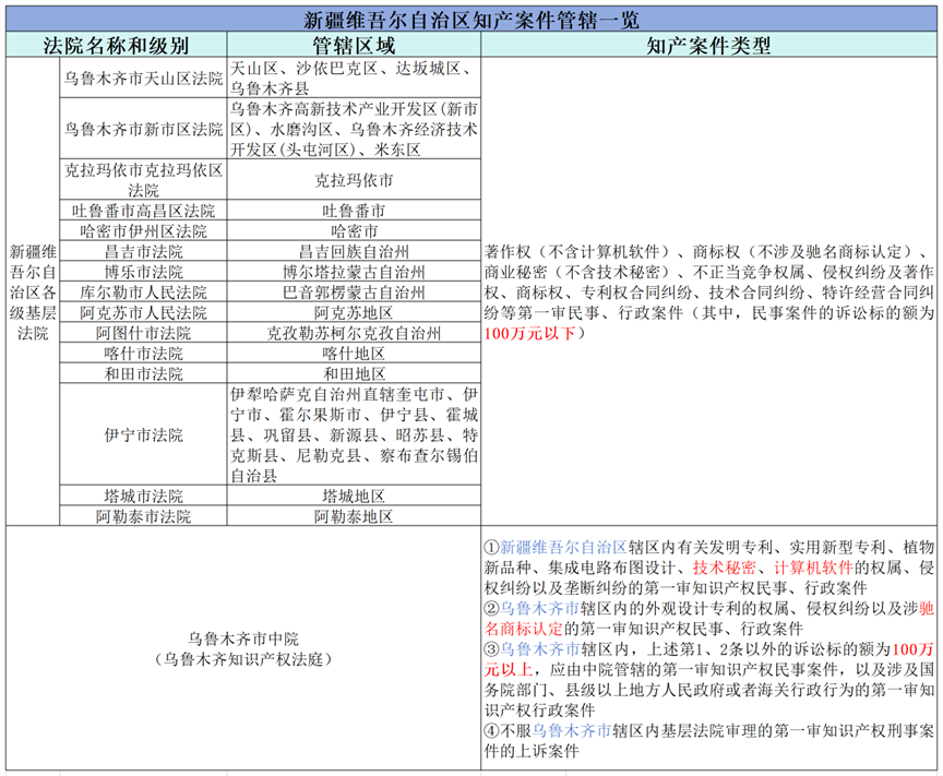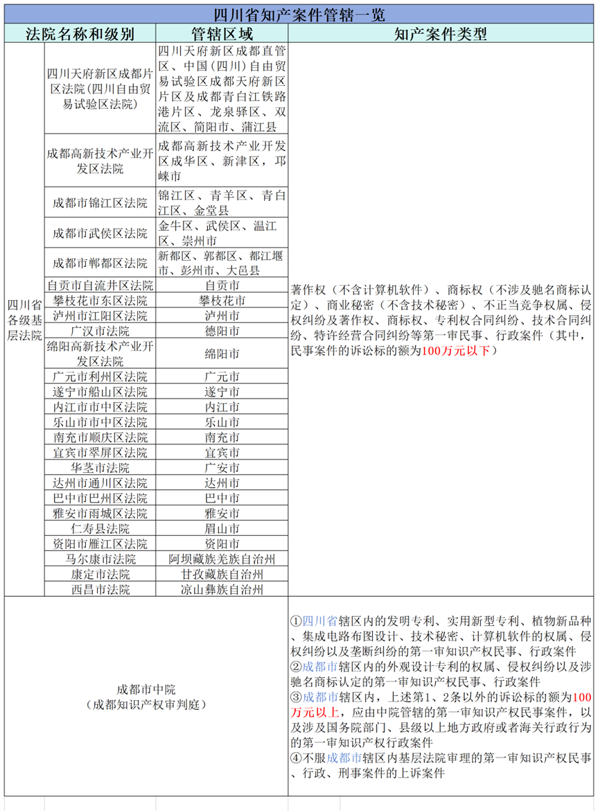 本文中,笔者根据法释〔2022〕13号、法〔2022〕109号以及上述两份法律文件发布前后各省、自治区、直辖市高院发布的关于调整辖区内知产法院/法庭管辖范围的通知及/或最高院的批复等文件,对目前我国的最高知识产权法庭、四个专门知识产权法院以及其他二十六个知识产权法庭的管辖范围进行了整理。