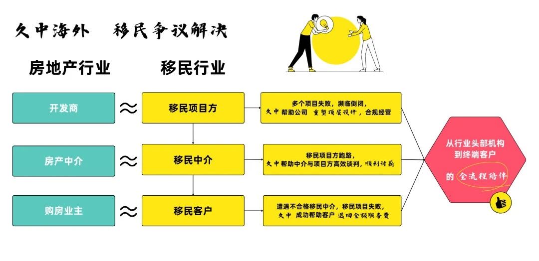 若以房地产市场类比移民行业,下图便展现了久中在这一领域的长期积淀,以及我们在移民领域从行业头部机构到终端客户的全程陪伴。